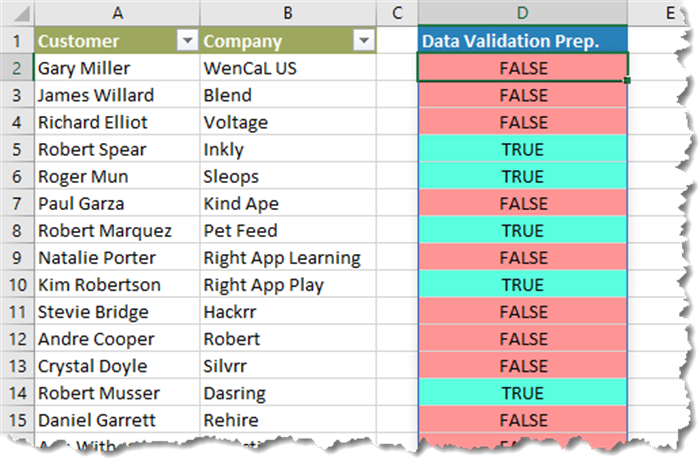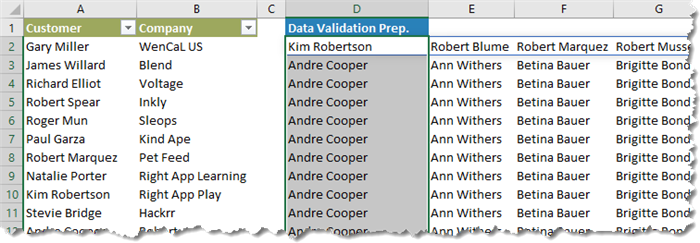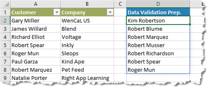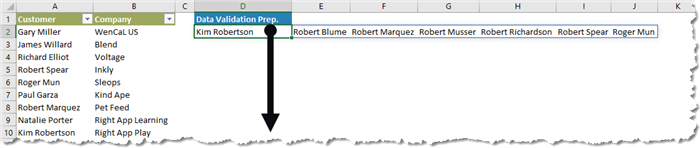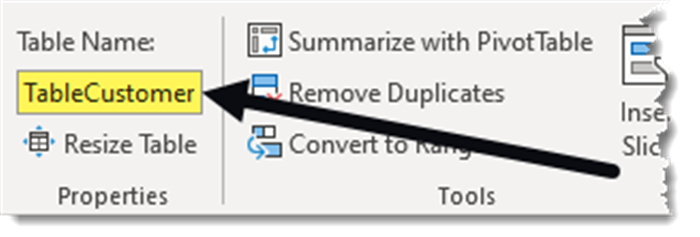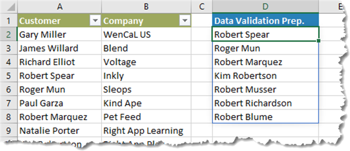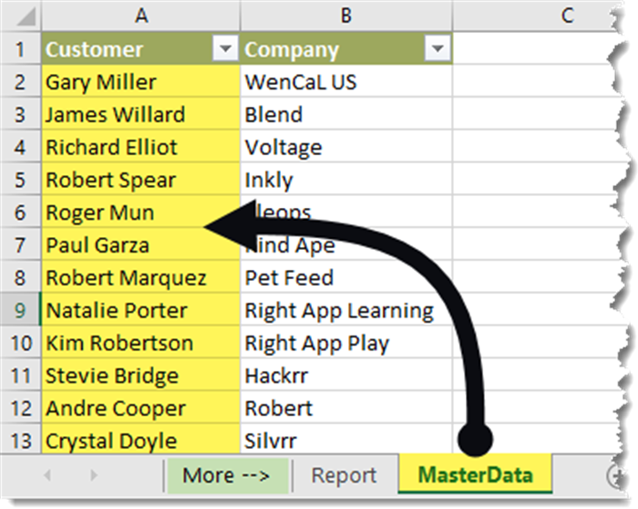 Our list of Customer and Company has been set up as an official Excel Table named “TableCustomer”.