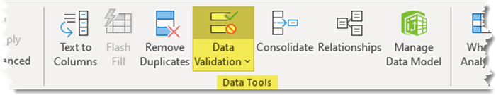 On the Report sheet, select cell B5 and go to Data (tab) -> Data Tools (group) -> Data Validation.