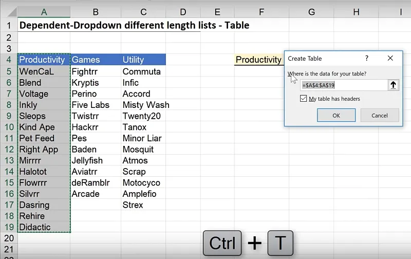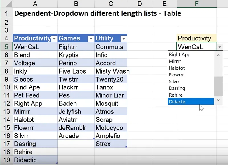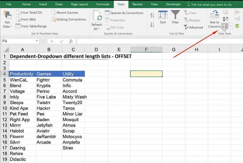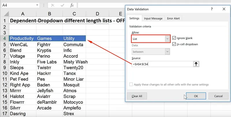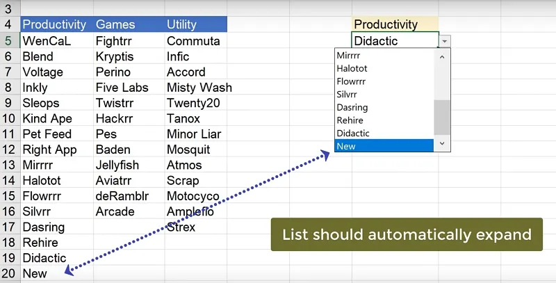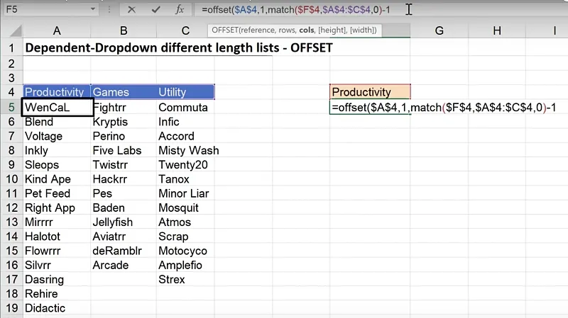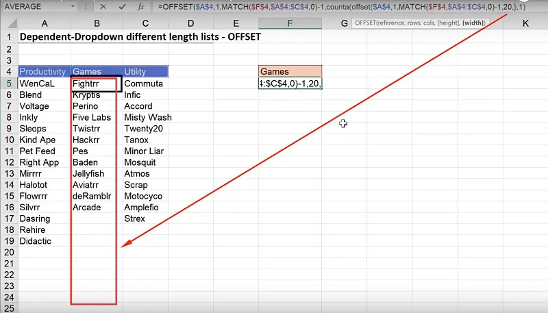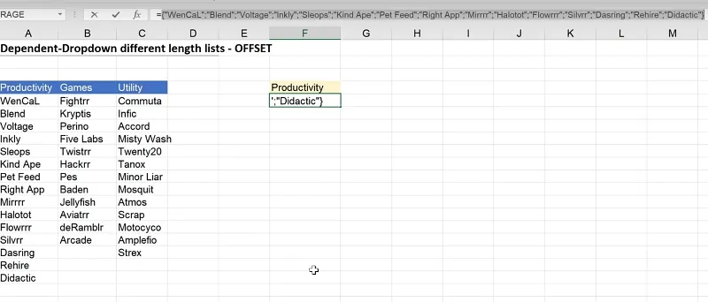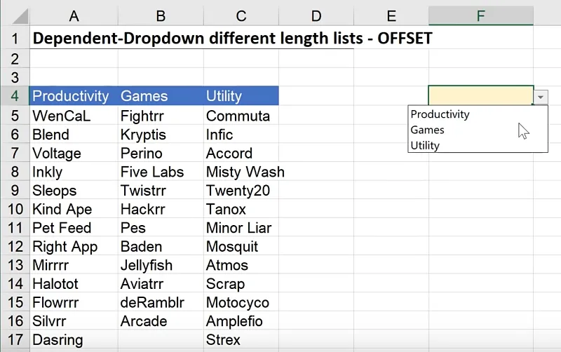 Method 1: Using OFFSET() to create a dynamic drop-down list