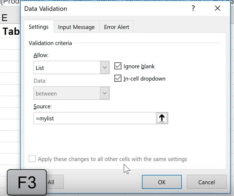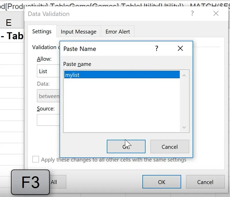 If you have forgotten the name of the formula you have recently added to Name Manager, press F3.