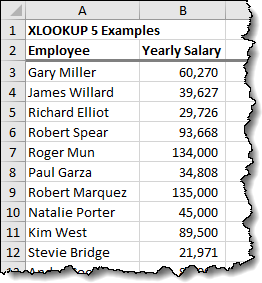 In our data sheet (named “Salary”), we have a list of employee names and their yearly salaries.