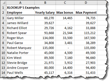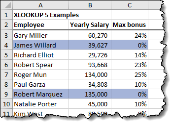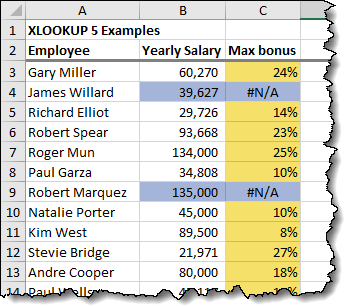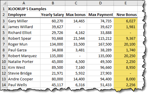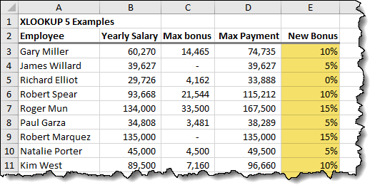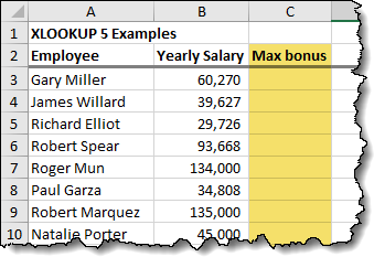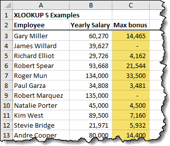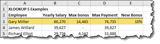 We see that Gary Miller, with a yearly salary of 60,270, receives a bonus percentage of 10%.