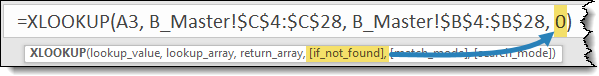 =XLOOKUP(A3, B_Master!$C$4:$C$28, B_Master!$B$4:$B$28, 0)