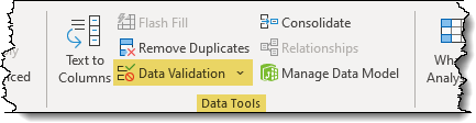 Select cell F4, then click Data (tab) -> Data Tools (group) -> Data Validation.