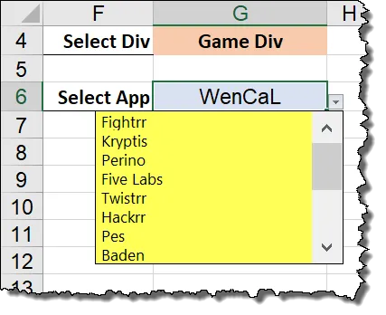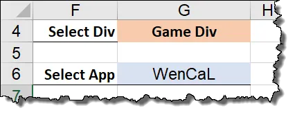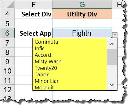 This macro does not run if any other cells are selected or if their content is changed. The macro only runs if the value of cell G4 changes. This behavior ensures whatever App name appears in the second list relates to the Division seen in the first list.