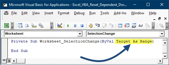 Observe that Selection Change has a variable called Target as Range.