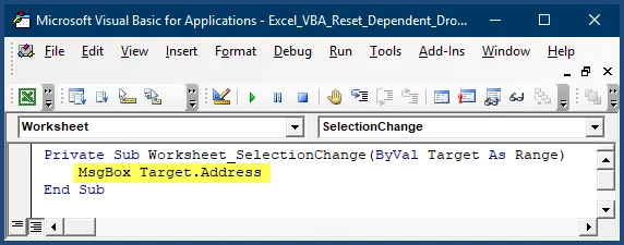 We will use that for our demonstration. We will use a message box to display the address of the selected cell (Target).