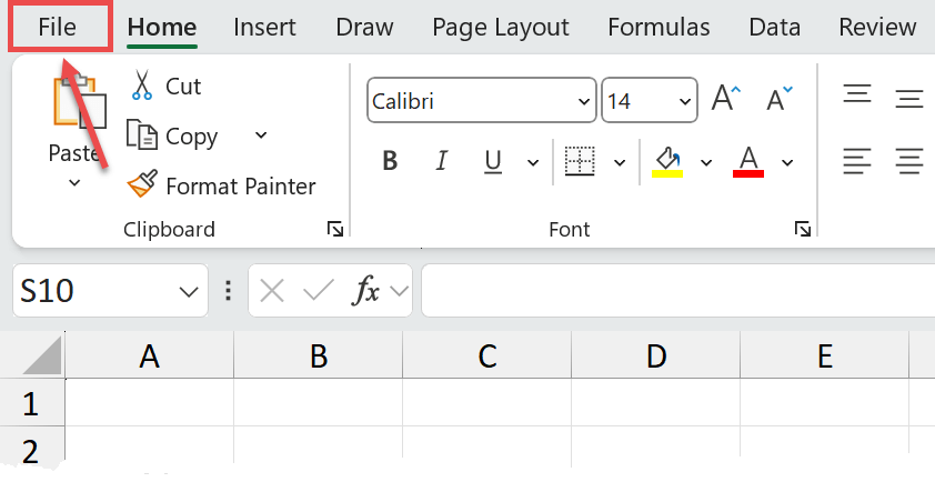 - 2. Go to the File Menu: Click the File tab in the top-left corner.