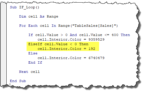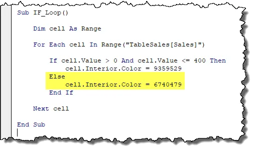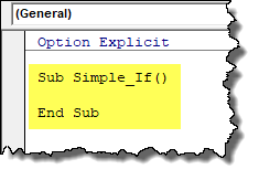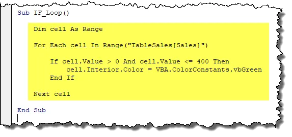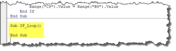 Return to the VBA Editor and click between the Sub and End Sub commands in the IF_Loop() procedure.