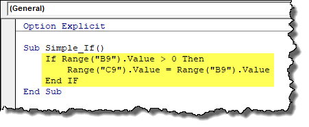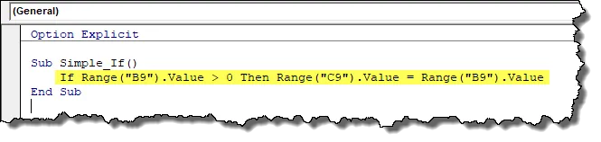 If Range("B9").Value > 0 Then Range("C9").Value = Range("B9").Value