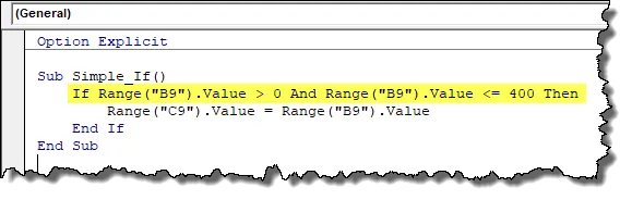 If Range("B9").Value > 0 And Range("B9").Value <= 400 Then
