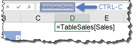Highlight the reference in the formula bar (do not include the equal’s sign) and press CTRL-C to copy the reference into memory.