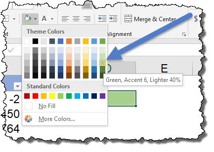 The color green is a bit on the bright side. We want a pale green, but we don’t know the color code for pale green. Here is a great way to discover the color of any cell.