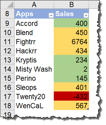 We will now update the code to color all the negative valued cells red. The color code for the red we will be using is 192.