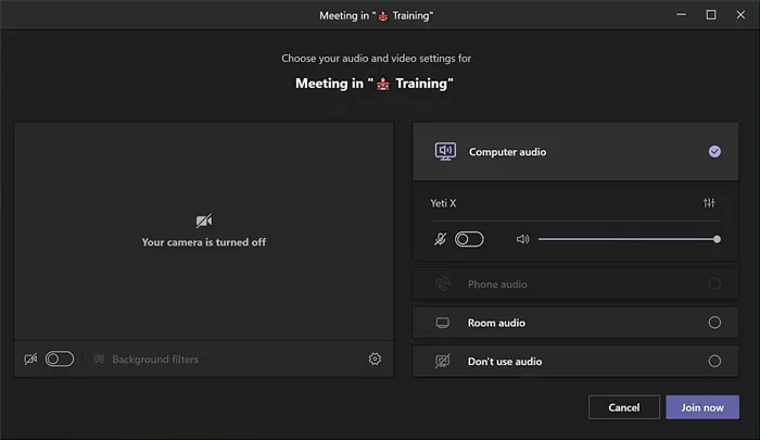 We click the “Join Now” button (lower-right) to start the meeting.
