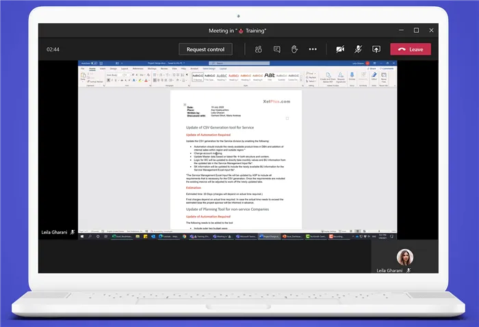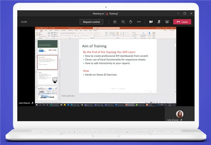 Using this method of presentation provides a convenient way for other participants to take control and present. It makes for easier collaboration.