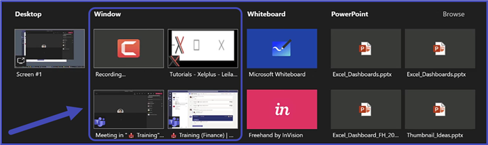 If you wish to restrict the audience’s view to a specific window, select the application from the Window section of thumbnails.