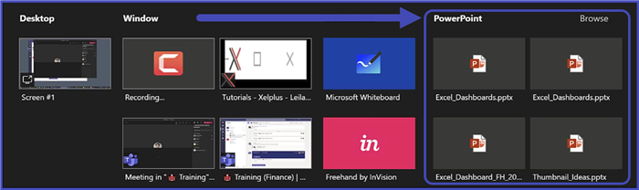 - Share a PowerPoint file in Presentation Mode (more on this feature later).