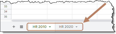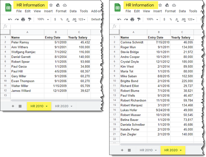 For this demonstration, the data needed for the report is in a file named “HR Information” which has two tabs: “HR 2010” and “HR 2020”.