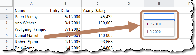 If we change the drop-down from “HR 2010” to HR 2020” we see the new data returned based on the desired sheet.