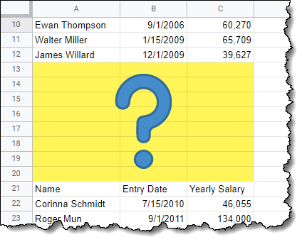 We could refine the formula to only return data from the occupied range, but this would limit our flexibility when adding rows to the source tables. We would need to constantly refine our formulas to reflect the current dimensions of the data.