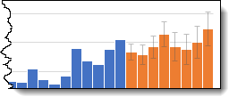 In the bar chart version, the upper and lower confidence bounds are represented as Vertical Error Bars.
