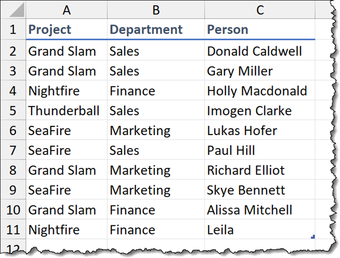 Grouping is a great way to create lists of items that share a common factor. In our case, we want to create a separate list of Person names for each “Project/Department” combination.