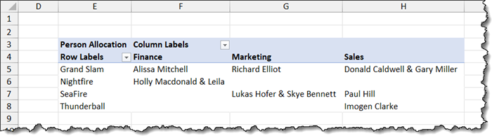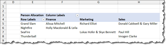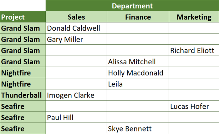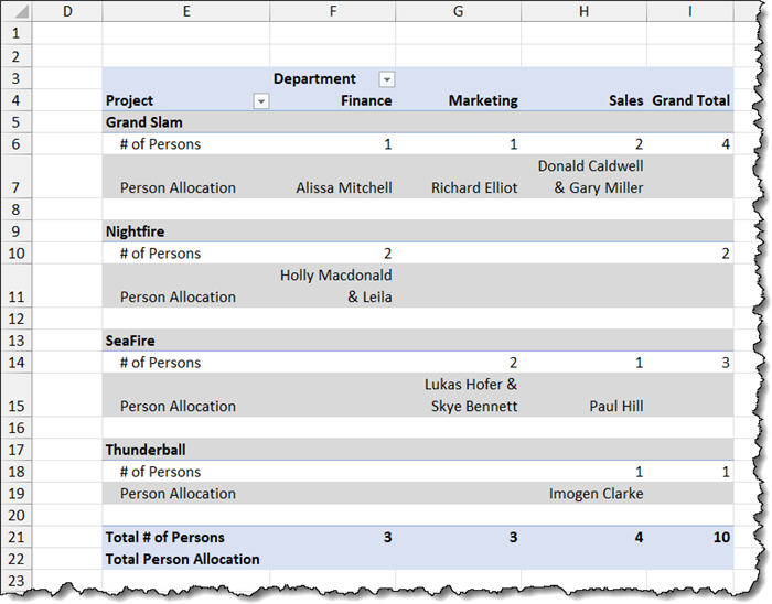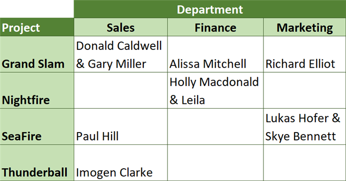At the intersection of each “Project/Department” combination we wish to see all Persons assigned to the said combination.