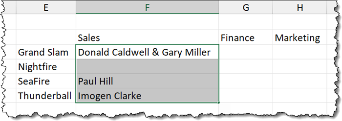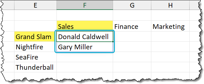 If we examine the results for “Grand Slam” and “Sales” (cell F3), we see that 2 names are returned.