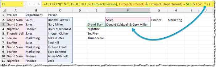 =FILTER(TProject[Person], TProject[Project] & TProject[Department] = $E3 & F$2, "")