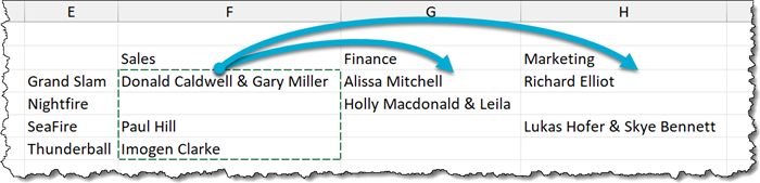Like the previous methods, we want to iterate through the table, concatenating each person with an identical “Project/Department” combination.