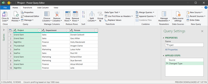 To send the results back to Excel as a new table, click Home (tab) -> Close (group) -> Close & Load.