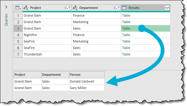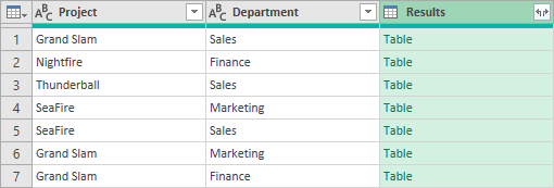 We’re still not ready to pivot the Departments because our Results column contains nested tables.