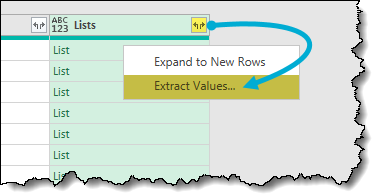 Click the small “left/right” arrow button at the top of the “Lists” column and select “Extract Values…”