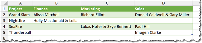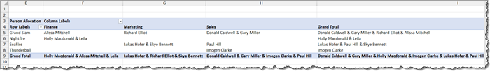 Our table should have but a single entry for each “Project/Department” and list all Persons in a single cell.