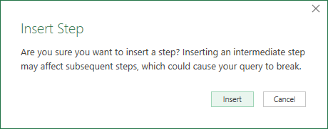 - In the Insert Step notification, click Insert to add the new step to the query.