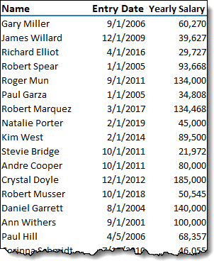 Suppose we have a dataset about personnel data with columns for names, entry date and the yearly salaries.