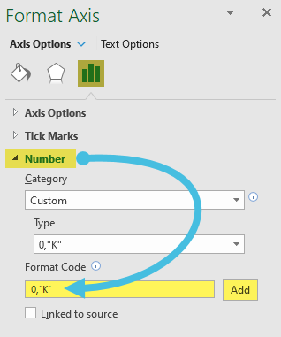 - Example: If your data ranges from 21,000 to 261,000, it will display as 21K to 261K.