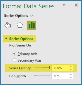 - Click any bar, then press Ctrl+1 to open the Format Data Series panel.