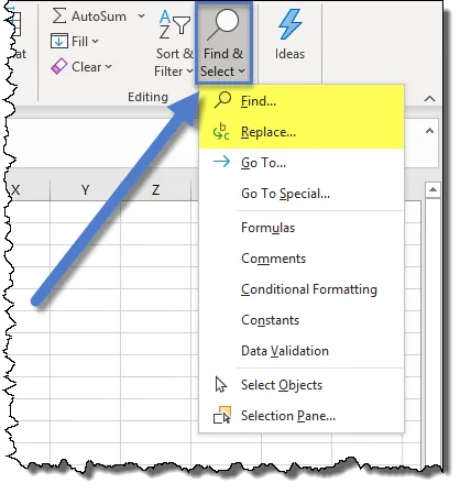 Accessing Find and Replace in Excel