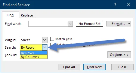- Workbook: Searches all sheets in your file. Useful for comprehensive reviews across multiple datasets.