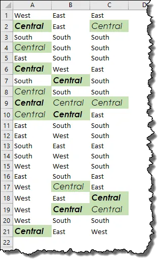 In order to select cells based on their fill color and not any of the other cell’s visual attributes, we need to search for the color only.