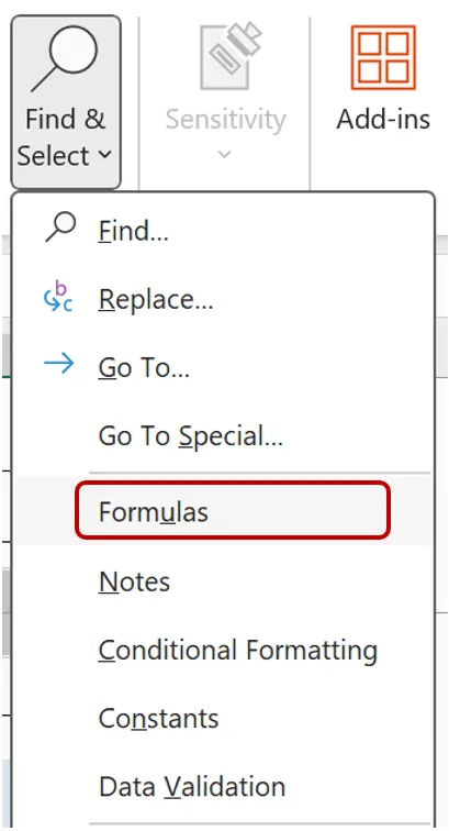 Find All Cells Containing Formulas in Excel