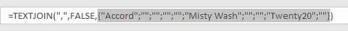 Accord,,,,,Misty Wash,,,Twenty20,If we highlight the IF function in the formula and press F9 we will see the following responses.