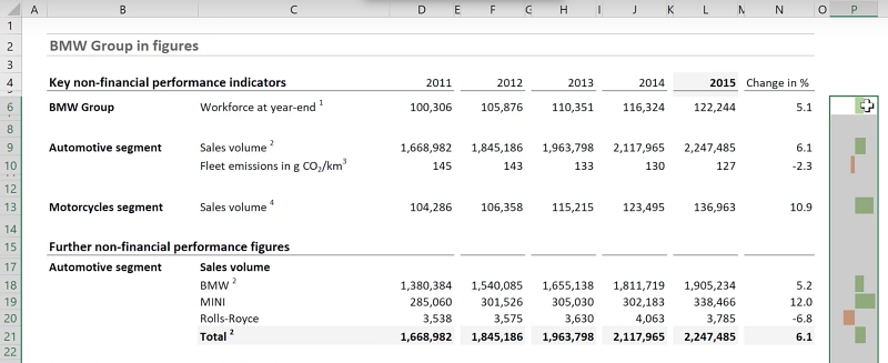 These data bars give color to the report and bring attention to the bigger positive and negative differences.
