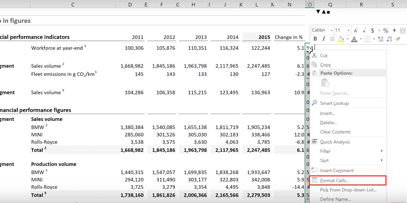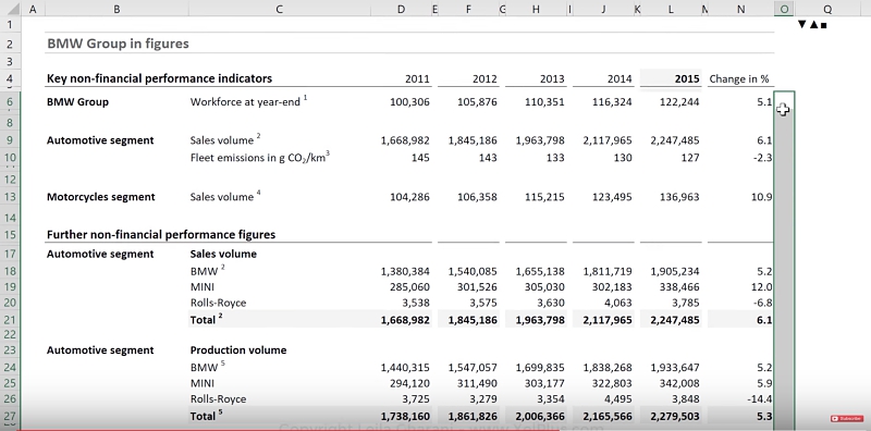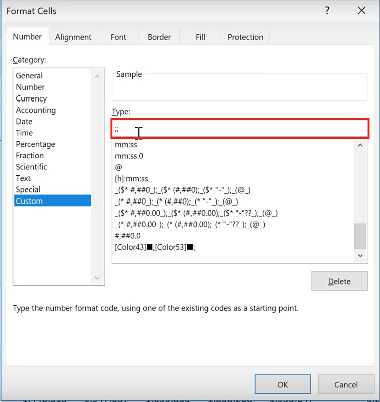 These sections are divided by an Excel separator, the semicolon (;). You have the option to fully decide on the formatting of all four. If you remove all the defined formatting and leave the semicolons, you will notice that the values in column O are no longer visible even if the numbers are still there.