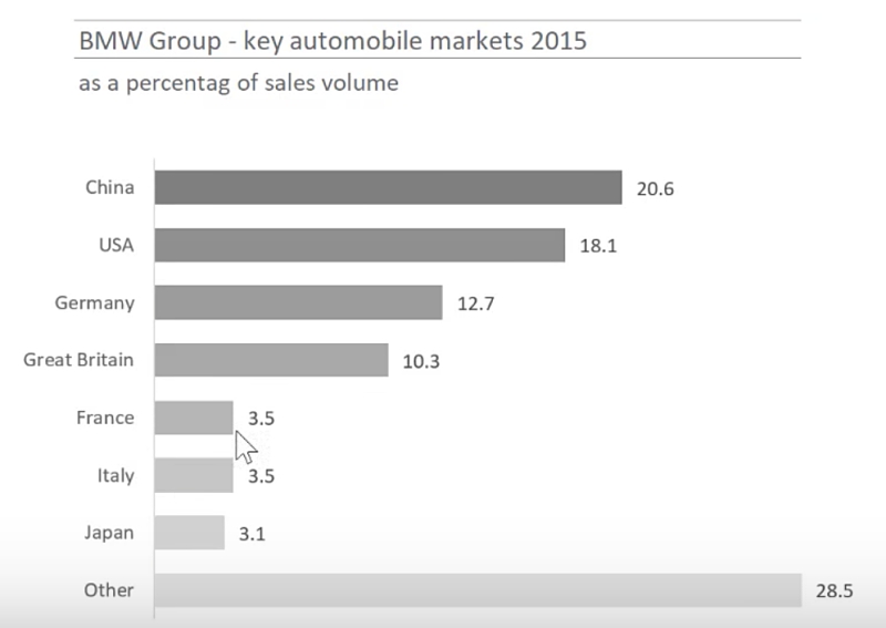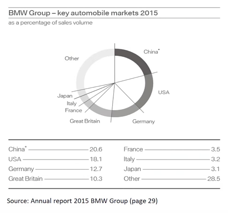 In this case, we’re looking at key geographical areas as a percentage of sales volume, while other countries are grouped in the Other category.
