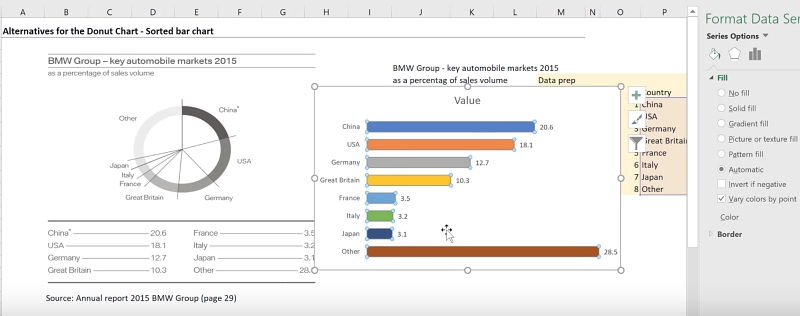 Make sure to exclude the Other category, since we want this to remain as the last data series in the chart.