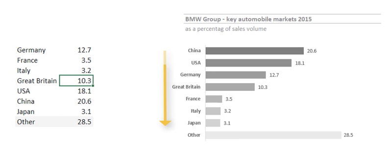 Taking the example below, this bar chart employs automatic sorting so if the numbers change, the sort order automatically changes too.
