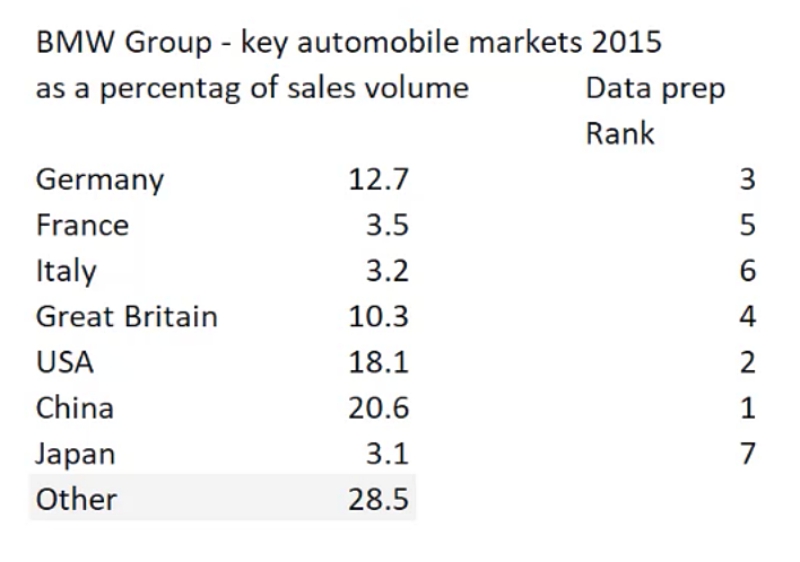 This will now show the rank of the categories in descending order, with China having the highest rank.
